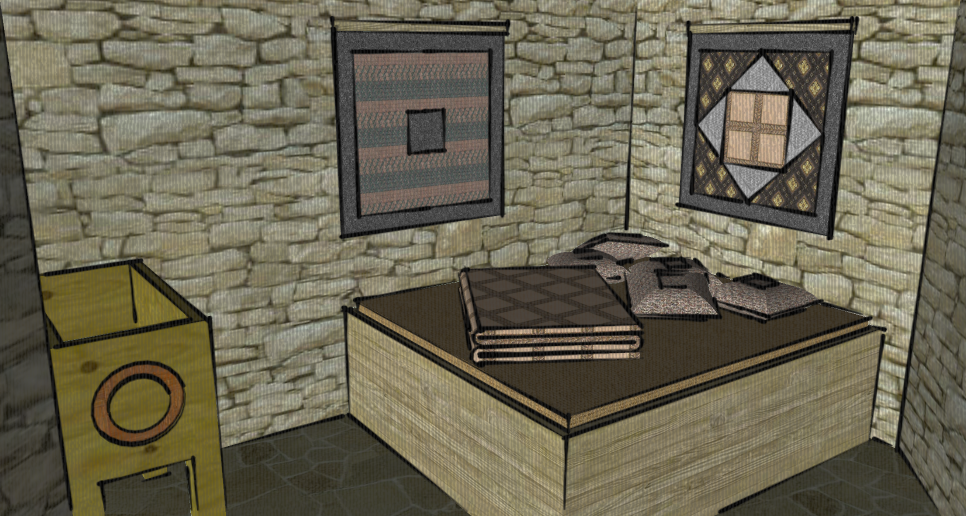 Rundt om det centrale rum ligger højens andre rum. Køkken/madlavningsrum, badstue, wc'er og soverum. Fra madlavningsrum og wc'er er der normalt en bagudgang ud af højen.